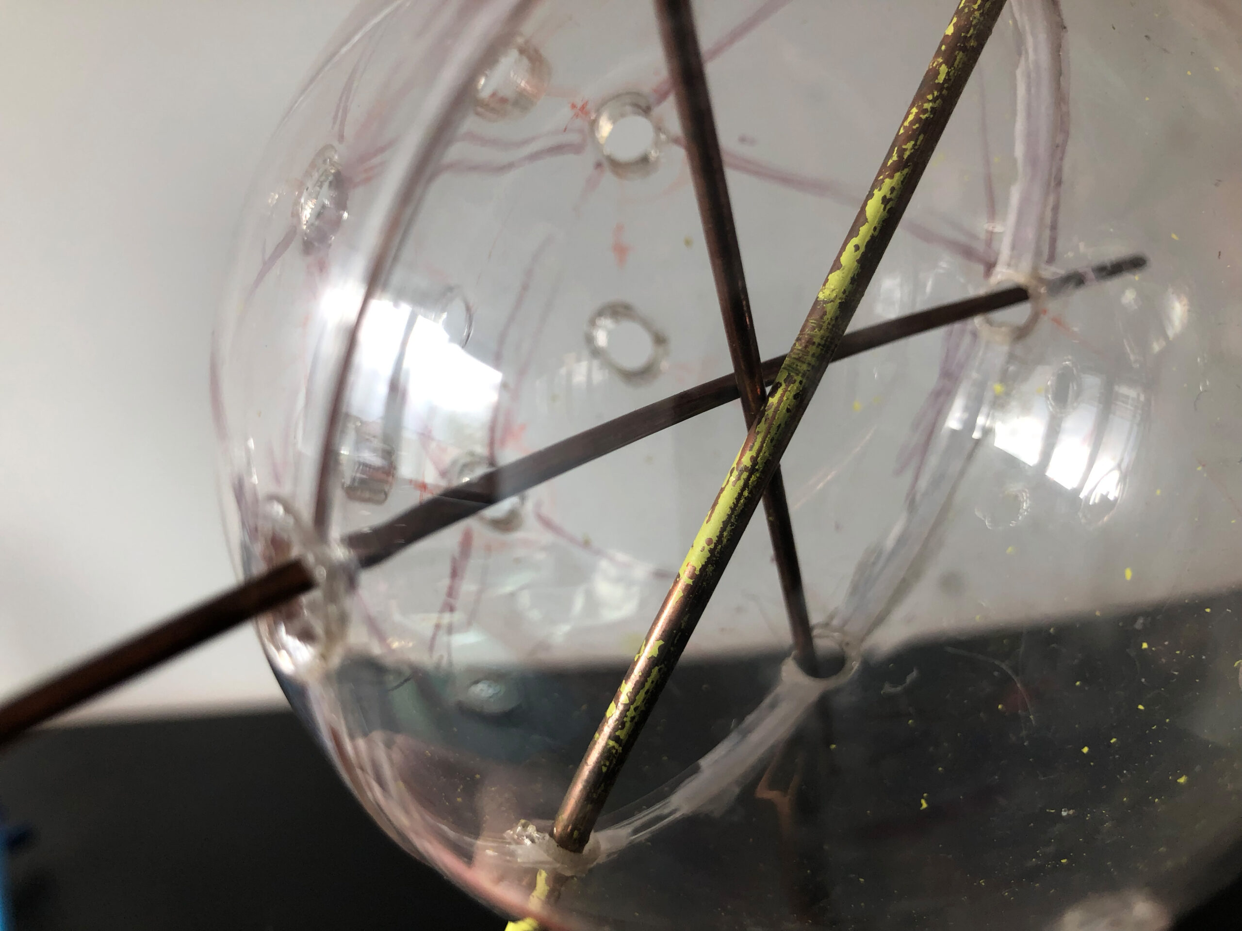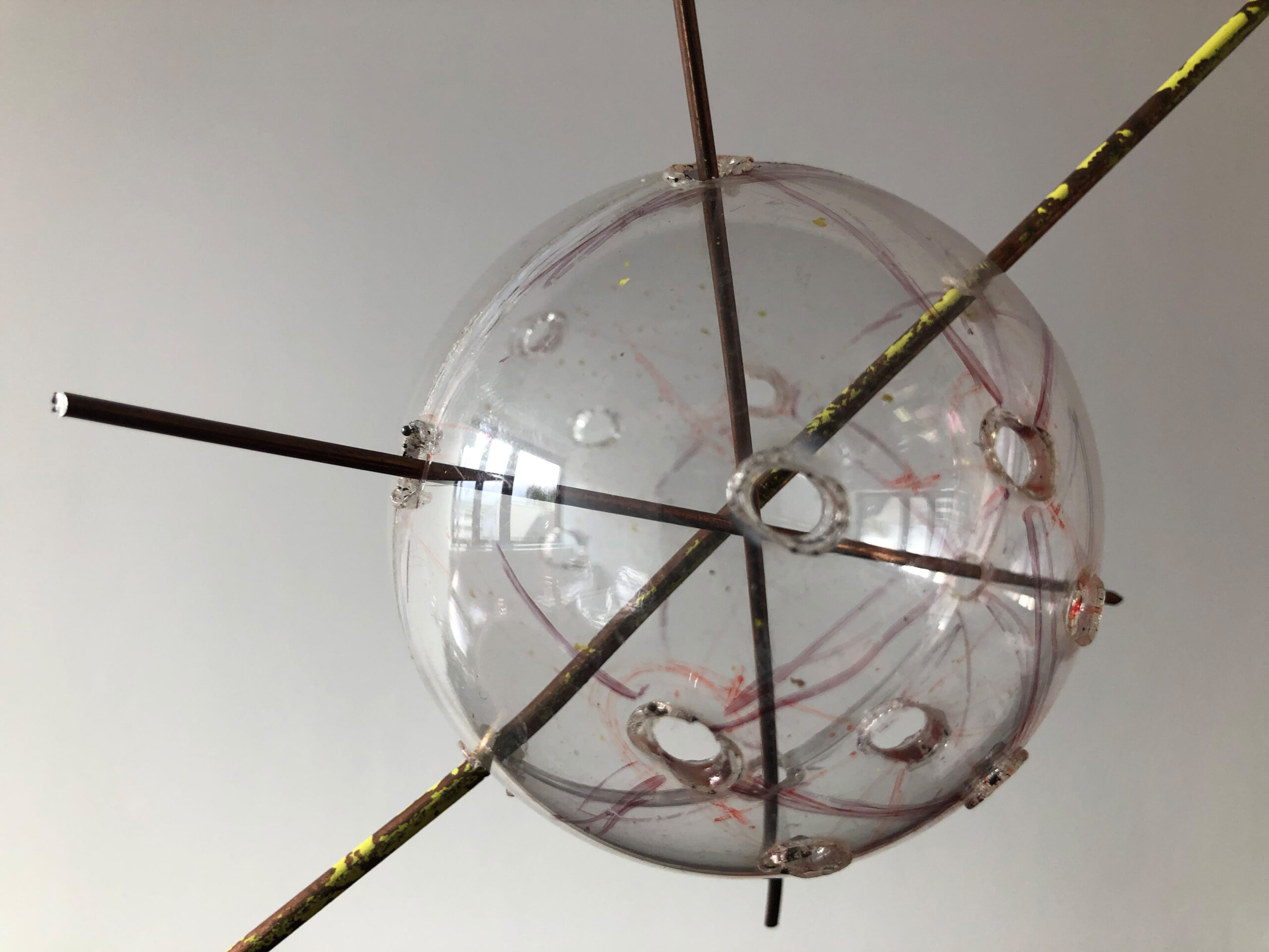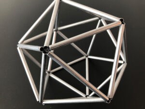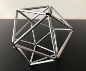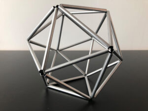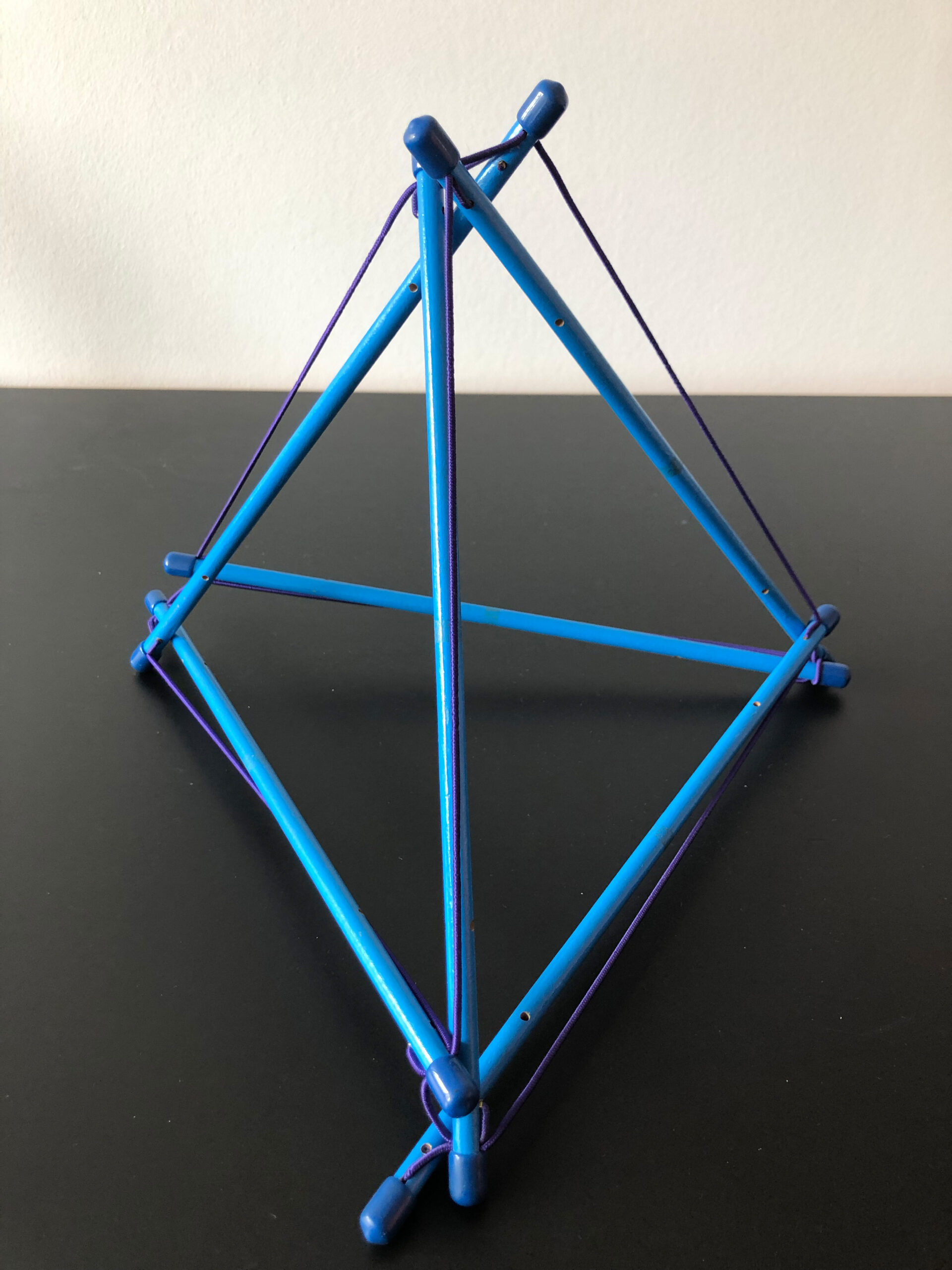 Bucky‘s research in geometric models such as the Tetrahedron led to the concept of »Tensegrity«. Form is understood as an dynamic interplay of events such as pull and push instead of static shapes. This leads to a new understanding of metaphysics and a reformulation of basic principles. For example, the wind does not blow but air is drawn from higher pressure areas to lower pressure areas.