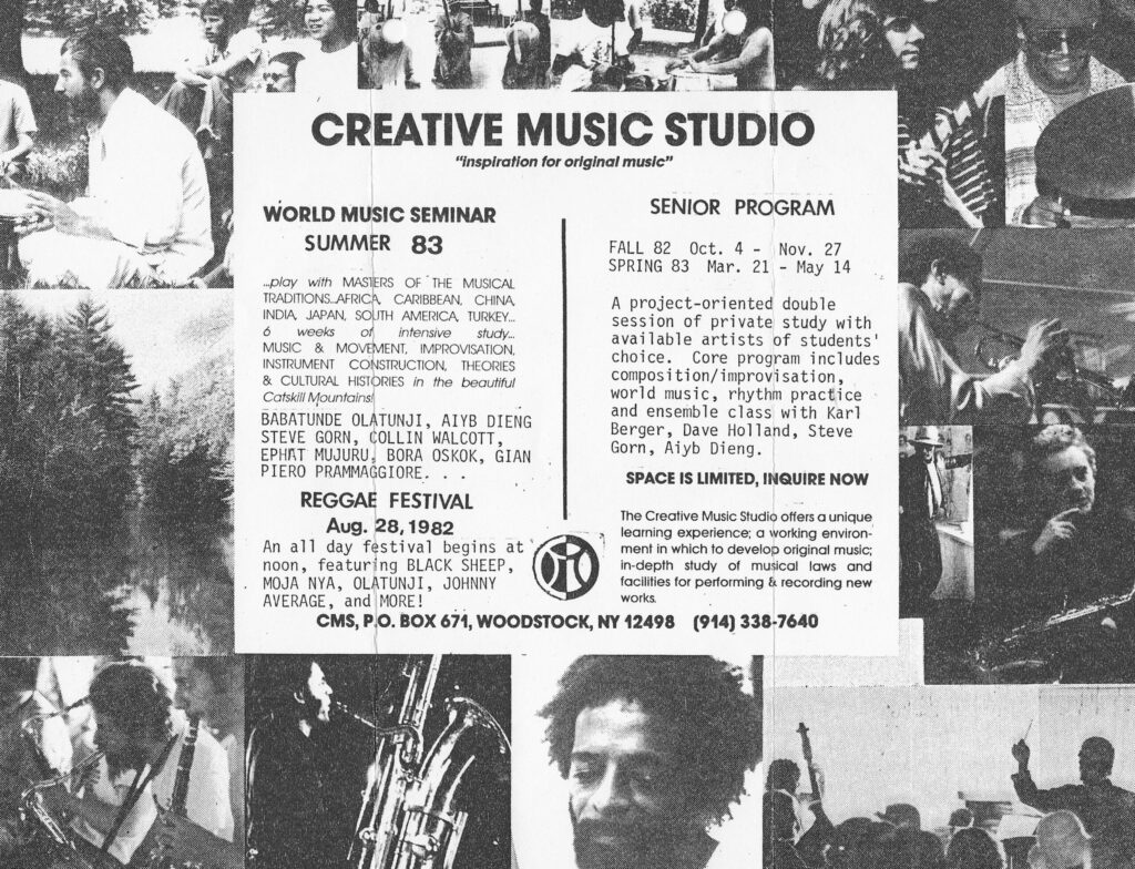 The Creative Music Studio is »a place where music as a universal language can be explored and expanded«, see creativemusic.org/about. It was founded in 1971 by Karl Berger, Ingrid Sertso and Ornette Coleman, see creativemusic.org/history. However, Ornette never showed up at the studio, let alone teach there. “We asked Ornette to come and do a workshop. He said »Are you kidding? Then people would think I know something.«” (from WIRE Magazine may 2013, Nr. 351, p.29) From an interview with Karl Berger: »One thing that Ornette said when we got started. I suggested that the first thing we needed to do was form an advisory board that showed the breadth of what we wanted to do. So he asked me to contact Buckminster Fuller, Willem DeKooning, John Cage, Gil Evans, George Russell I think. A very diversified group of people, all over the map. He wanted to show through that that it wasn’t about jazz, it was not about a certain kind of music. So, I talked to all these people. Buckminster Fuller was fine. DeKooning I never reached. Gil Evans was fine, George Russell, even Cage«.