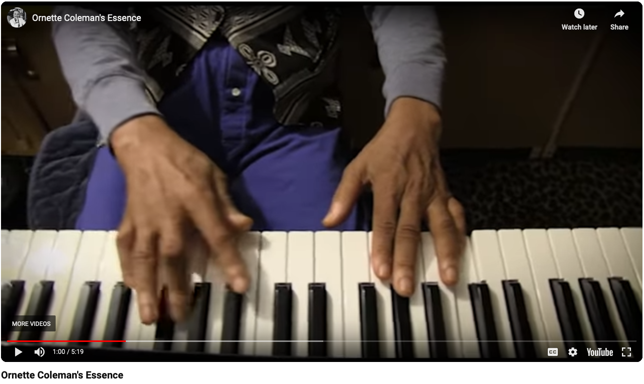 Harmolodics, Buckminster Fuller, Ornette and the piano, Ornette/Derrida on improvisation, History, Context/Influence